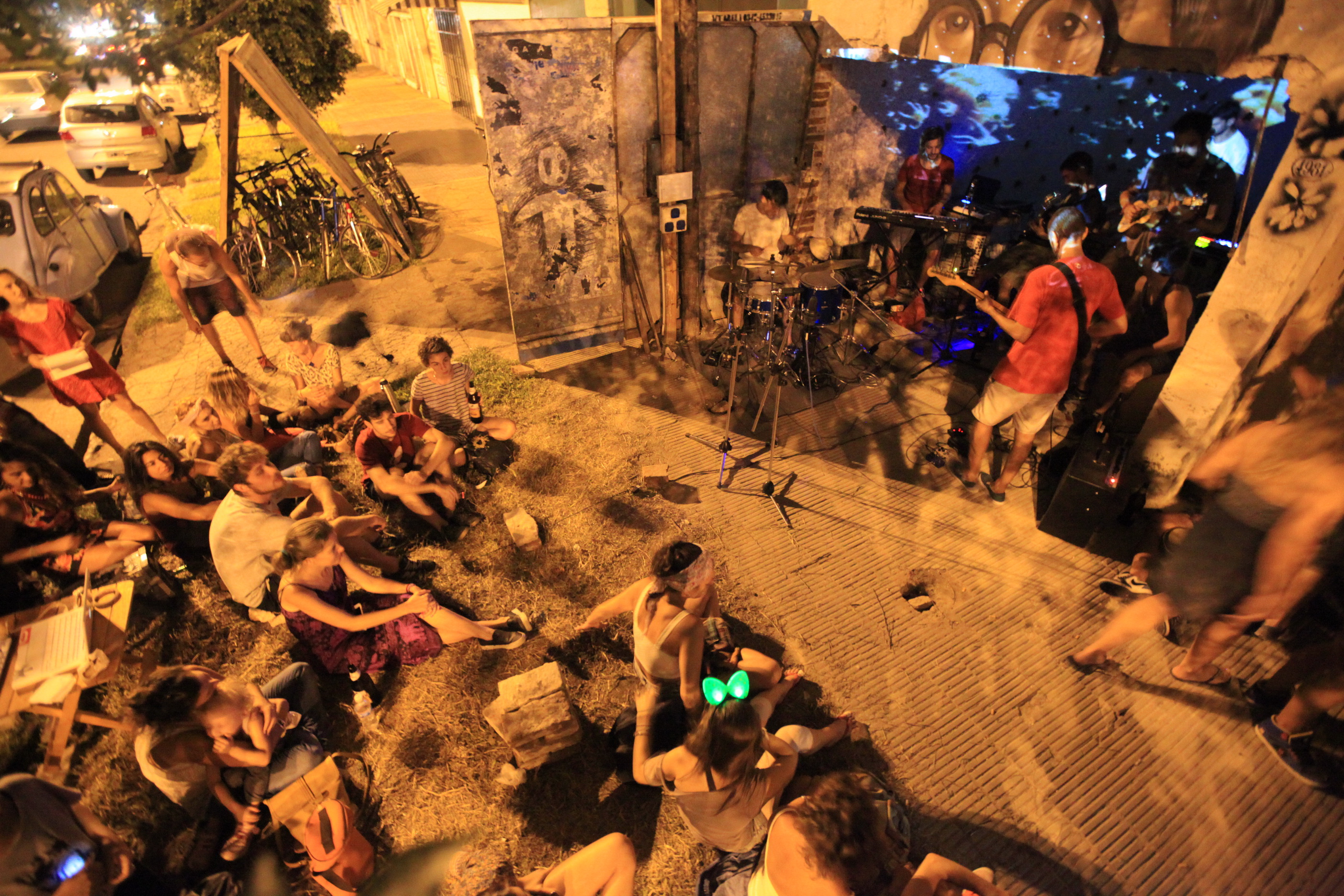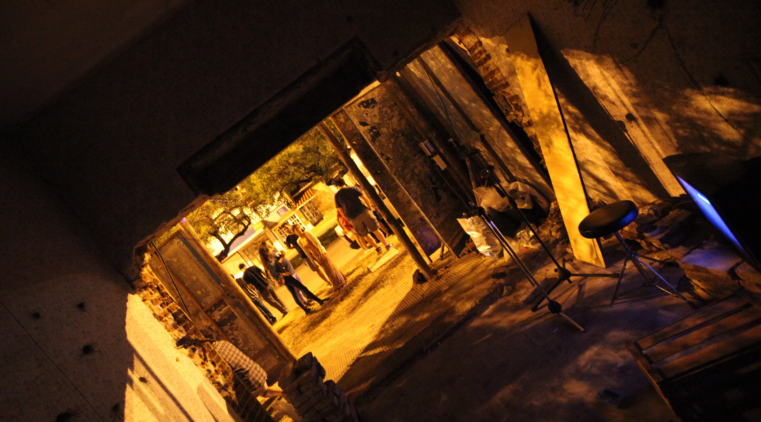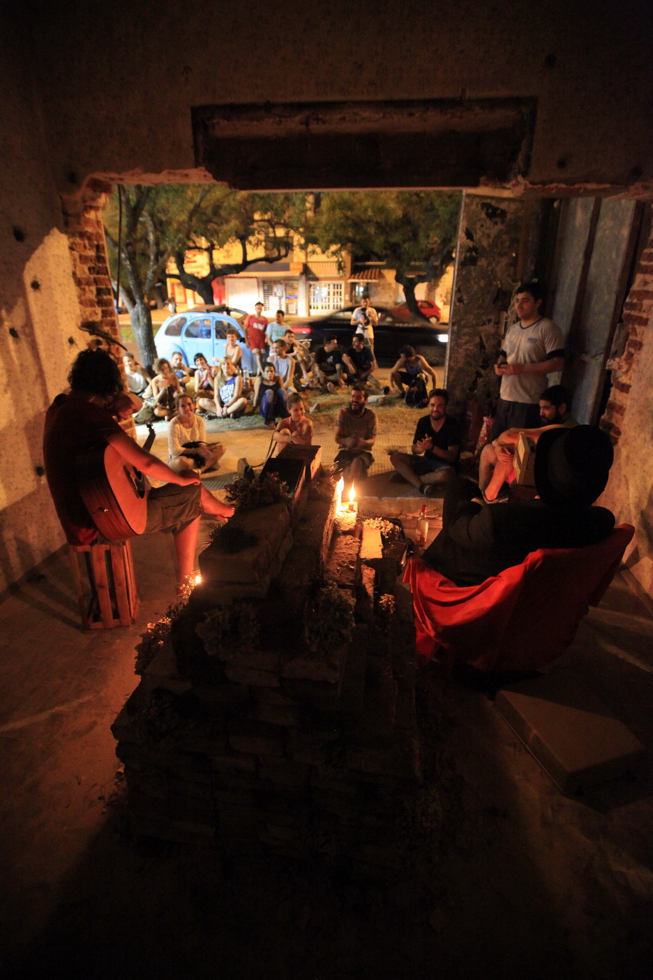 Pensamos que demoler la fachada de esa casa, iba a darle continuidad a la vereda, a la calle. la iba a convertir, en una extensión de espacio público. rompimos el límite para que tácitamente, la casa provocara a cualquiera, a acercarse, a participar, como se participa en la vereda, en la calle, o en la plaza. Esta primera intervención física y a la vez simbólica sería ante todo una operación de inserción en el tejido urbano de un objeto de alteridad, de extrañamiento, la consolidación de un nuevo territorio, de un espacio de género desconocido, entre lo público y lo privado (1) (espacio trans). Transformado el espacio y transgredido su carácter, generamos un usuario en las redes sociales, recuperando algunos caracteres simbólicos y construyendo otros nuevos: el derrumbe ya tenía un perfil público, una foto identitaria, y un llamamiento: Una convocatoria abierta al público. Nos propusimos, entonces, tomar el papel de “placeros” de este nuevo territorio, coordinando y brindando el soporte necesario para que las actividades e intervenciones de invitados y autoconvocados se sucedieran de manera espontánea y natural.