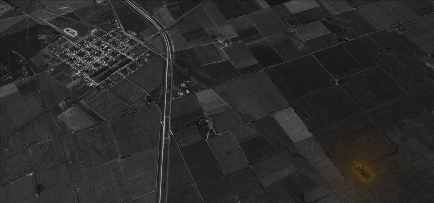 Muchas de las claves del paisaje pampeano fueron encontradas en torno a la figura del monte. El monte es un término que en la pampa argentina denomina a formaciones arbóreas aisladas entre extensas áreas de cultivo, sin necesidad de estar vinculado a cuestiones de desnivel topográfico. Si se atienden a tres factores fundamentales como la naturaleza de la pampa húmeda en su condición de tierra fértil, al carácter artificial de las áreas sembradas y a la extrema consolidación del sistema extractivo; no tardaremos en dilucidar que tanto “el monte” como los “pueblos rurales”, no son más que intersticios entre las inmensas superficies de suelo que congela la maquinaría agrícola. Dicho de otra manera, el monte y los pueblos rurales son los únicos espacios disponibles para el ser humano.