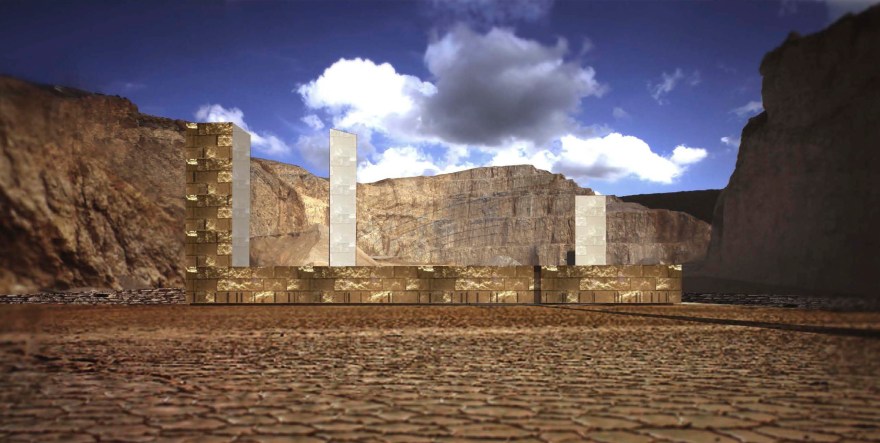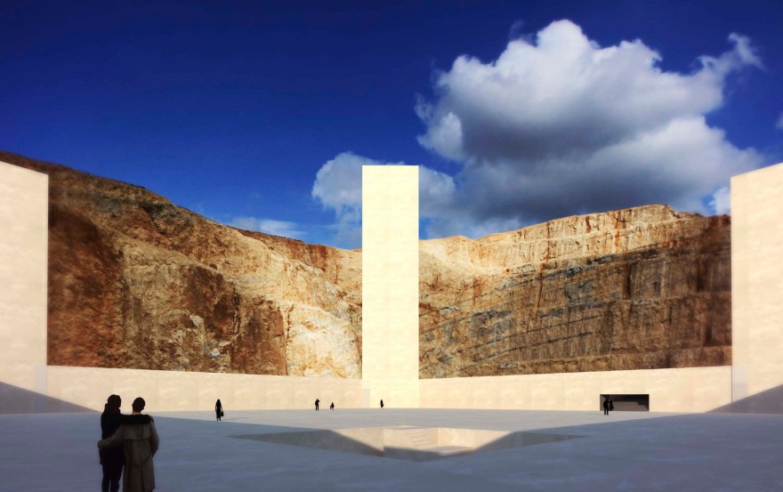 El segundo desafío del que resulta este proyecto, es el de la creación de una experiencia que encarna la aprehensión del espacio, y acerca la poética de lo vasto a la percepción del hombre. Para ello, el proyecto se ubica estratégicamente en una zona de estrangulamiento de la cantera, dándole forma a un gran vacío cuya proporción tiende a ser cuadrada y cuyo lado más alto posee alrededor de 200 metros. Mediante la localización del proyecto en esta zona, quedan establecidos tres sectores. El primero, de llegada y de percepción del edificio. El segundo, constituido como un gran patio – vacío de carácter abstracto que va a enmarcar el paisaje, y desde el cual se distingue un portal y puerta que lleva al tercer gran espacio antes mencionado, “el gran vacío”. El proyecto explota la poética del vacío, no solo por medio de una puerta mínima y de dimensiones a escala humana que abre a lo inconmensurable, sino que también, por medio de la localización de una capilla de dimensiones mínimas y de una enorme pureza, que por comparación da la pauta de lo que se habita.